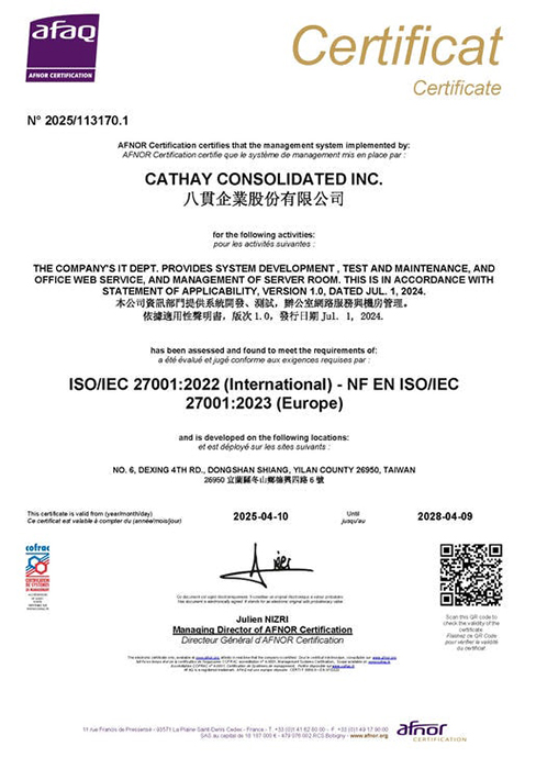 Continuous Improvement is Cathay’s primary goal. We have been accredited by ISO in quality management and other certifications in the quality management of products for aviation and space industries. This demonstrates the orientation and effort of Cathay Consolidated in the quest for technology and quality improvement.